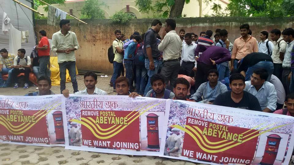 A mass protest is going on now at Dak bhawan for lifting abeyance on joining of PA/SA candidates 2014.